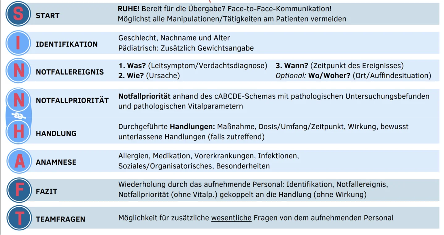 Allergien, Medikation und Vorerkrankungen sind mündlich zu übermitteln, wenn sie im direkten Zusammenhang mit der/den Behandlungspriorität/en (cABCDE) stehen und für die unmittelbare/lebensrettende Versorgung von Bedeutung sind.